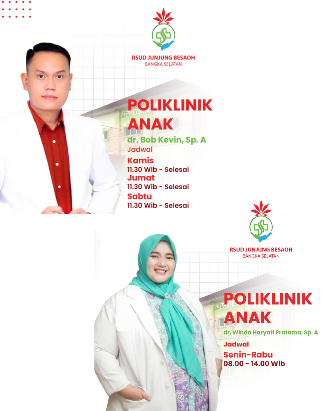 Poliklinik Anak adalah salah satu fasilitas kesehatan yang disediakan oleh Rumah Sakit (RS)Junjung Besaoh untuk merawat dan memantau kesehatan anak-anak. Berikut beberapa penjelasan tentang Poliklinik Anak: