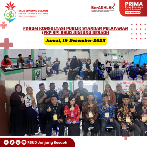 RSUD Junjung Besaoh Gelar Forum Konsultasi Publik Standar Pelayanan RSUD Junjung Besaoh, hari ini - RSUD Junjung Besaoh mengadakan Forum Konsultasi Publik Standar Pelayanan di ruang pertemuan rumah sakit. Kegiatan ini dihadiri oleh berbagai elemen masyarakat, termasuk kepala dinas kesehatan pengendalian penduduk dan keluarga berencana, tokoh masyarakat, tokoh agama, LSM, pemerintah desa